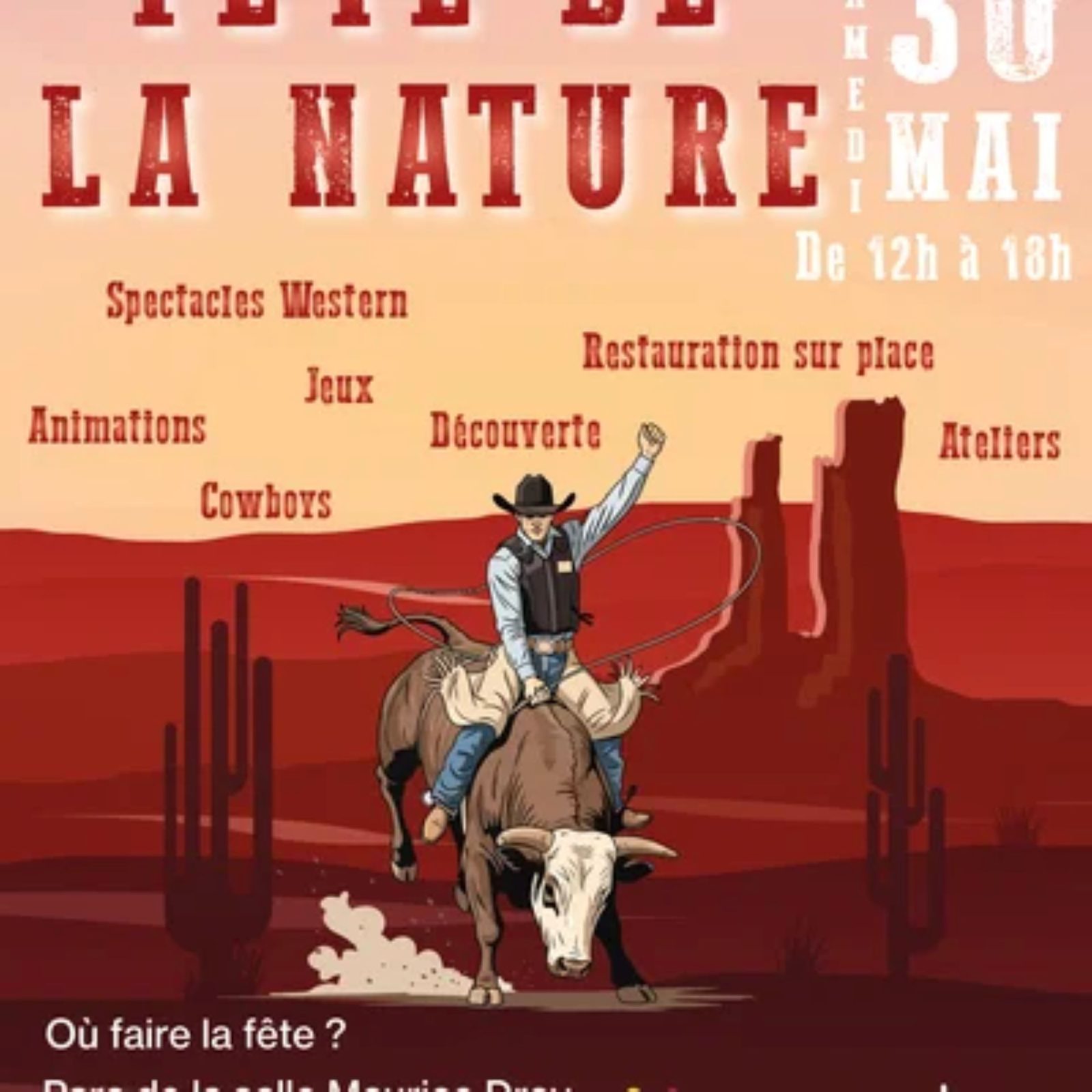 La Fête de la Nature vous donne rendez-vous le samedi 30 Mai de 12h à 18h au Mesnil-Amelot. Profitez d'une journée conviviale avec spectacles western, animations, jeux et restauration sur place