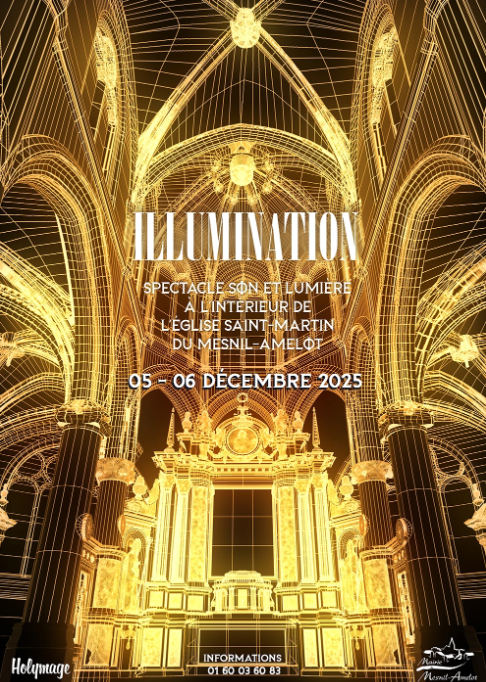 illumination Spectacle son et lumière Du 05 déc. 2025 au 06 déc. 2025 Français Accueil » Mon séjour » Agenda » illumination Spectacle son et lumière Partagez sur Facebook Partagez sur Twitter Partagez sur Linkedin À propos Prestations Date illumination Spectacle son et lumière à l’intérieur de l’église Saint-Martin du Mesnil-Amelot Types Culture Distractions et loisirs Performance artistique Prestations Langues parlées Français Date Du vendredi 5 au samedi 6 décembre 2025.