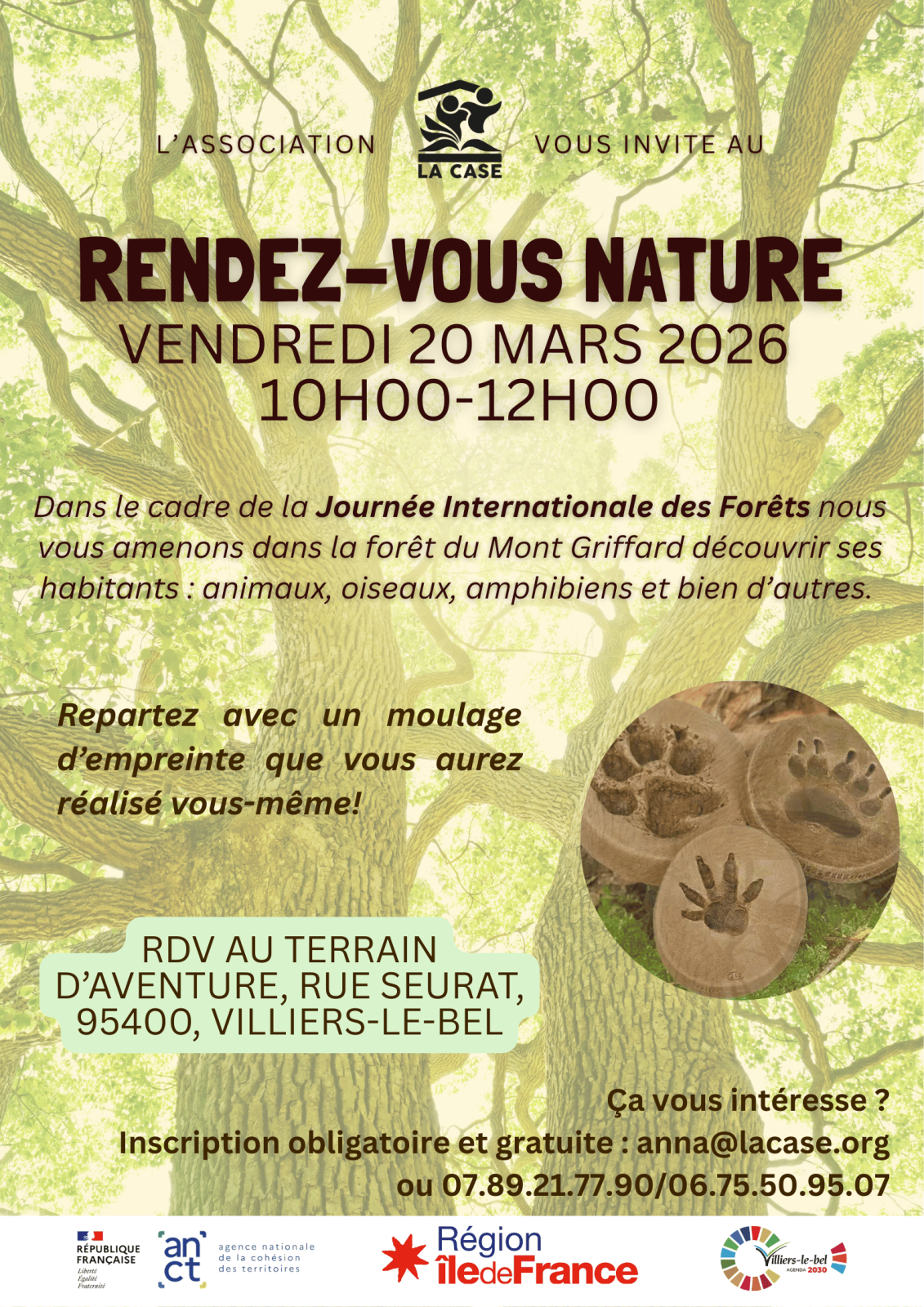 Dans le cadre de la Journée Internationale des Forêts, découvrez les habitants de la forêt du Mont Griffard : animaux, oiseaux, amphibiens et bien d'autres. Repartez avec un moulage d'empreinte que vous aurez réalisé vous-même !